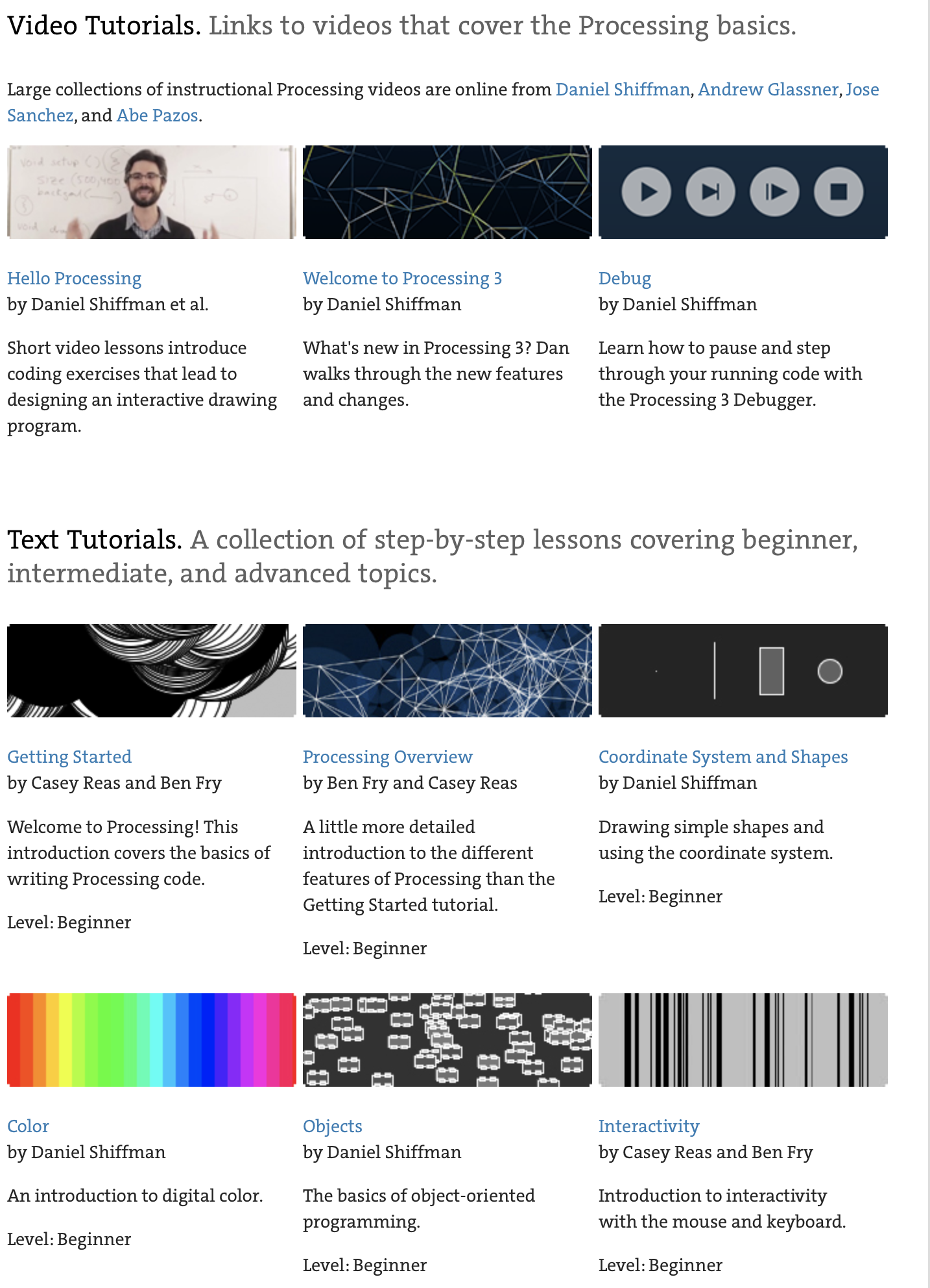 - Make: Getting Started with Processing, Second Edition. Casey Reas and Ben Fry.