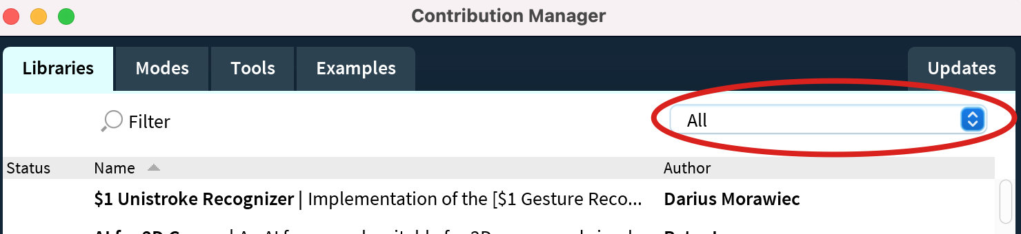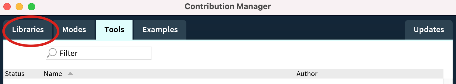A Contribution Manager window will appear. Click the Libraries tab.