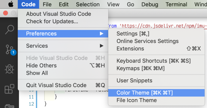 … then select a different color theme via the Code > Preferences > Color Theme menu item: